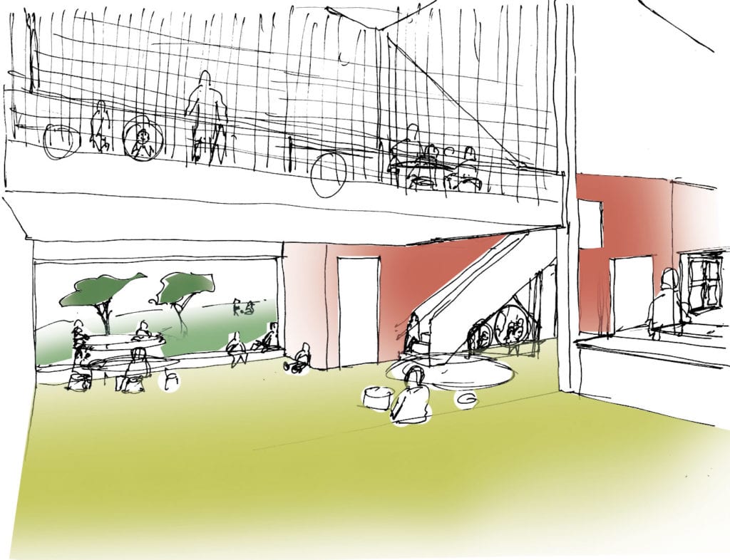 Oprindeligt var planen at opføre en særskilt bygning til daginstitution som kunne tilføre de manglende m2. Men efter workshops og dialogmøder foreslog CASA at skitsere en samlet løsning, som dels sikrede en renovering af den eksisterende daginstitution og dels en langt større sammenhængskraft mellem grupper, værksteder, sanse- og legerum.