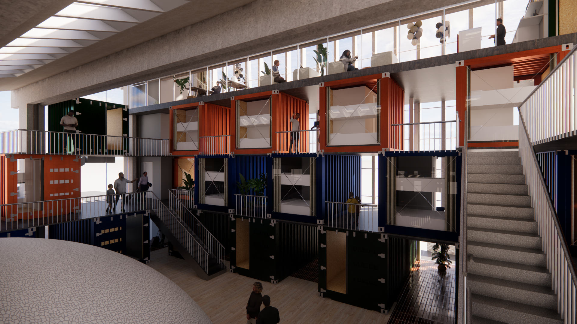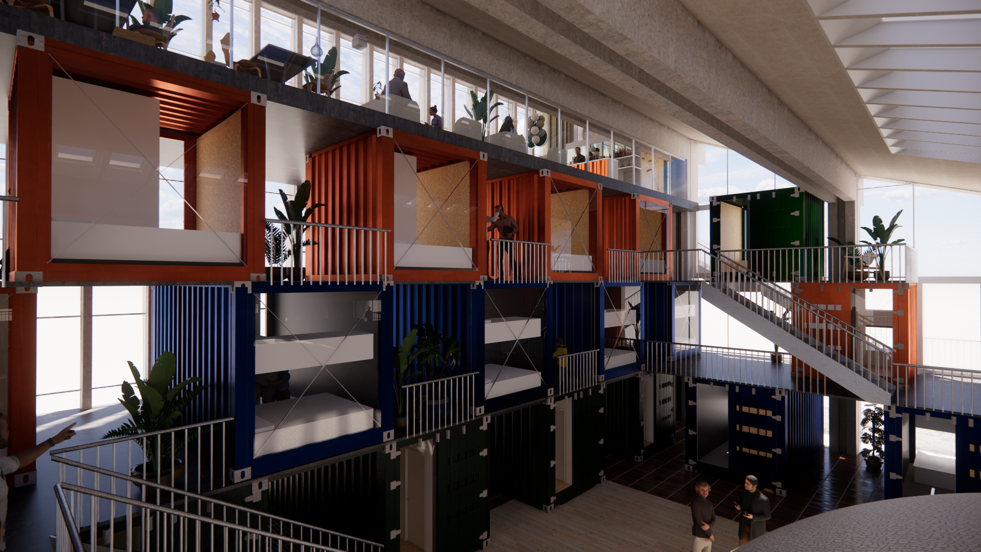 Det særlige ved hostellet bliver selve indlogeringen, hvor gæster får mulighed for at overnatte i genanvendte containere – et bæredygtigt greb, der bringer nyt liv til den ikoniske bygning.