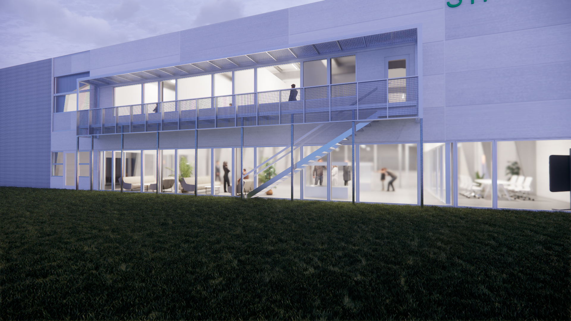 Som følge af udvidelsen af kontor- og mødefaciliteterne på 1. sal opstår der behov for nye flugtvejsudgange. Her er der arbejdet målrettet på at integrere flugttrappen i bygningens facadeudtryk ved at etablere en kassette omkring det nye vinduesparti og den tilhørende trappe.